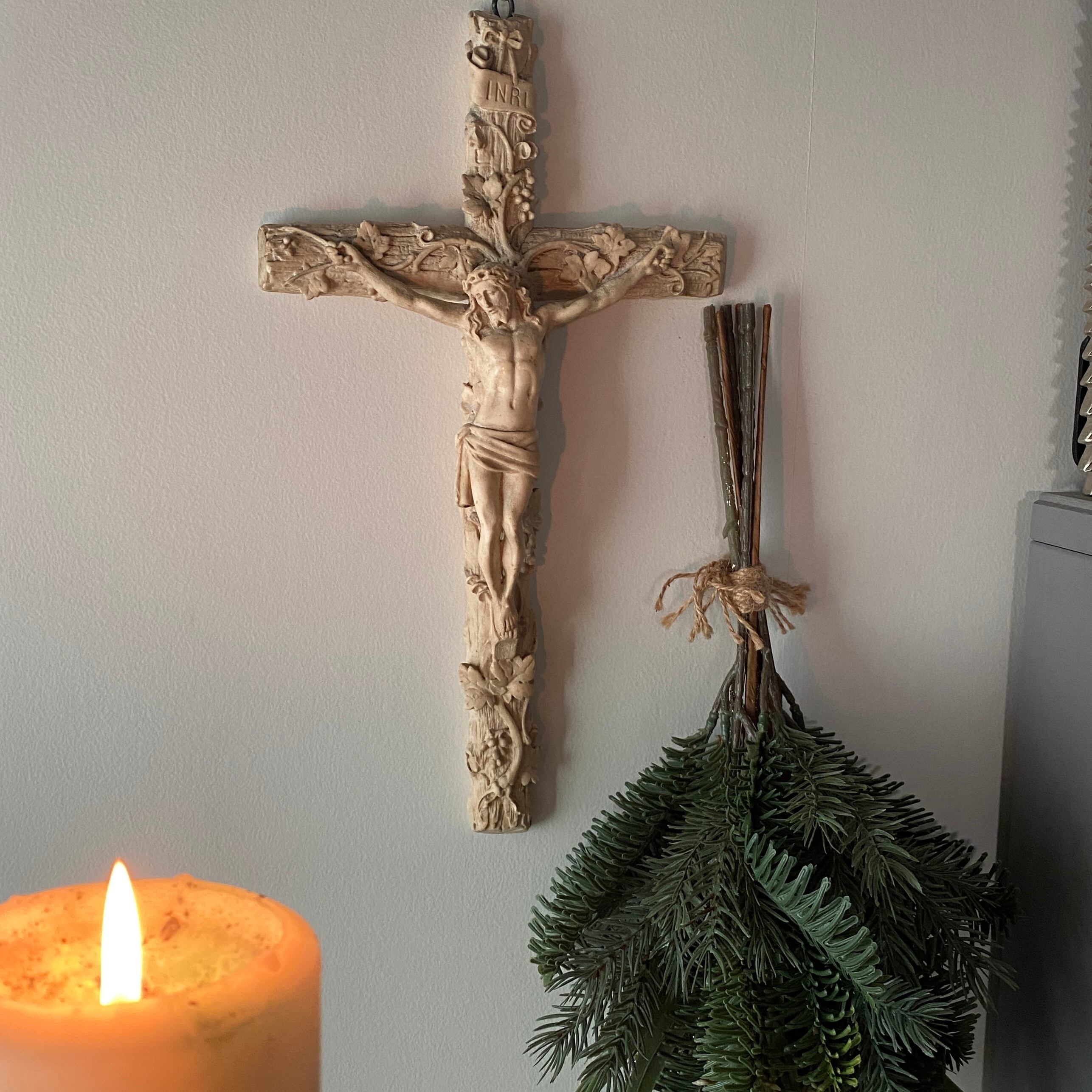 葡萄に覆われた希少な磔刑のクロス。