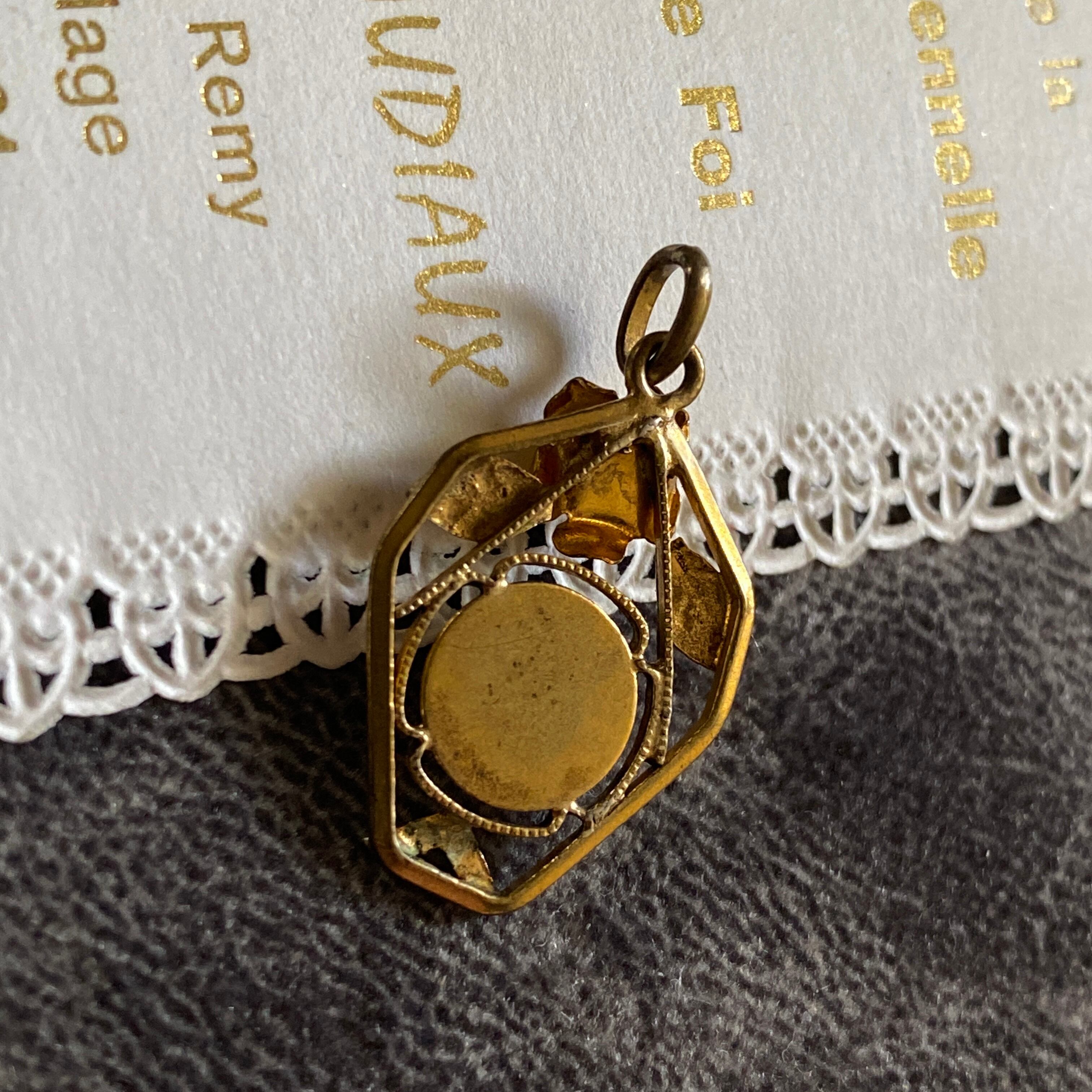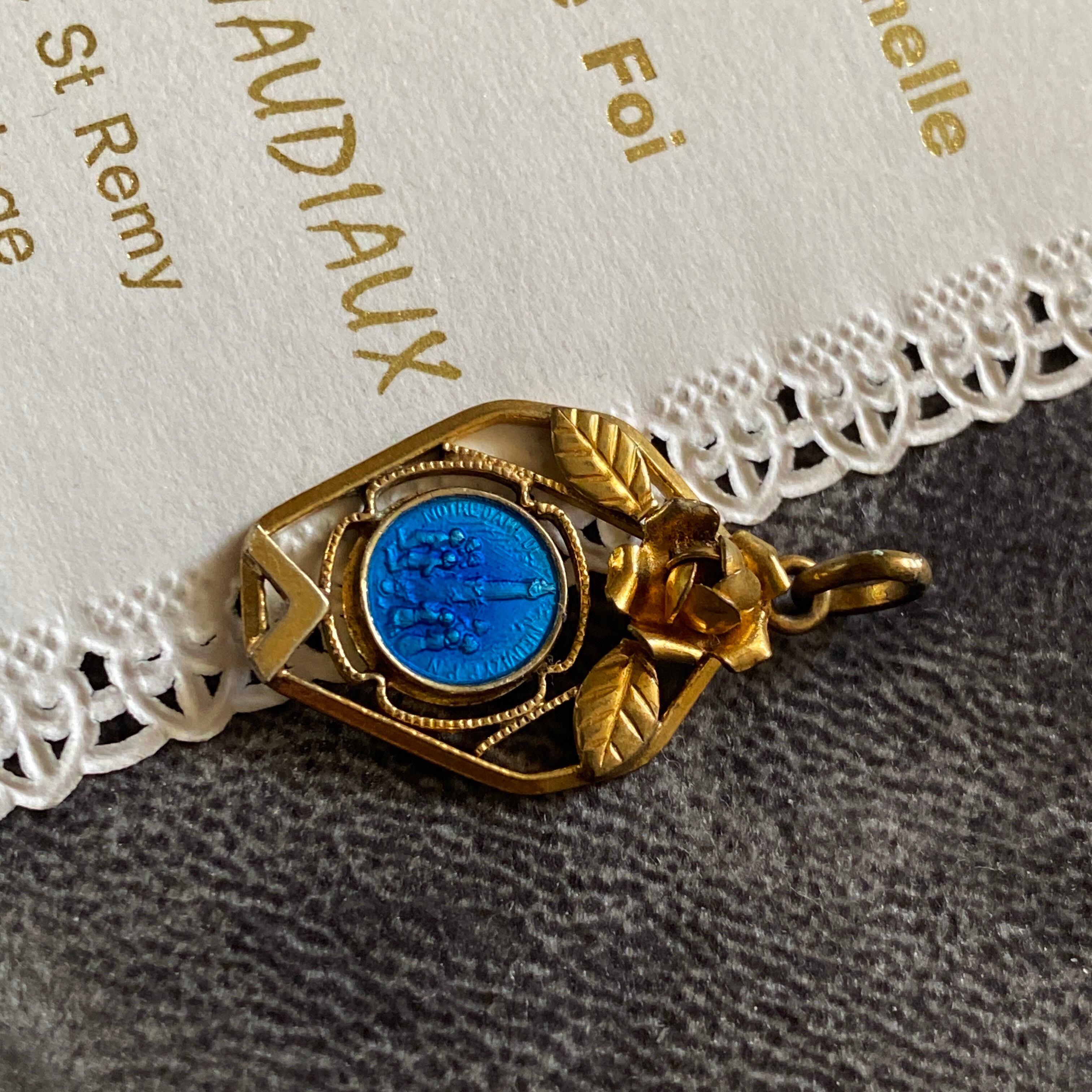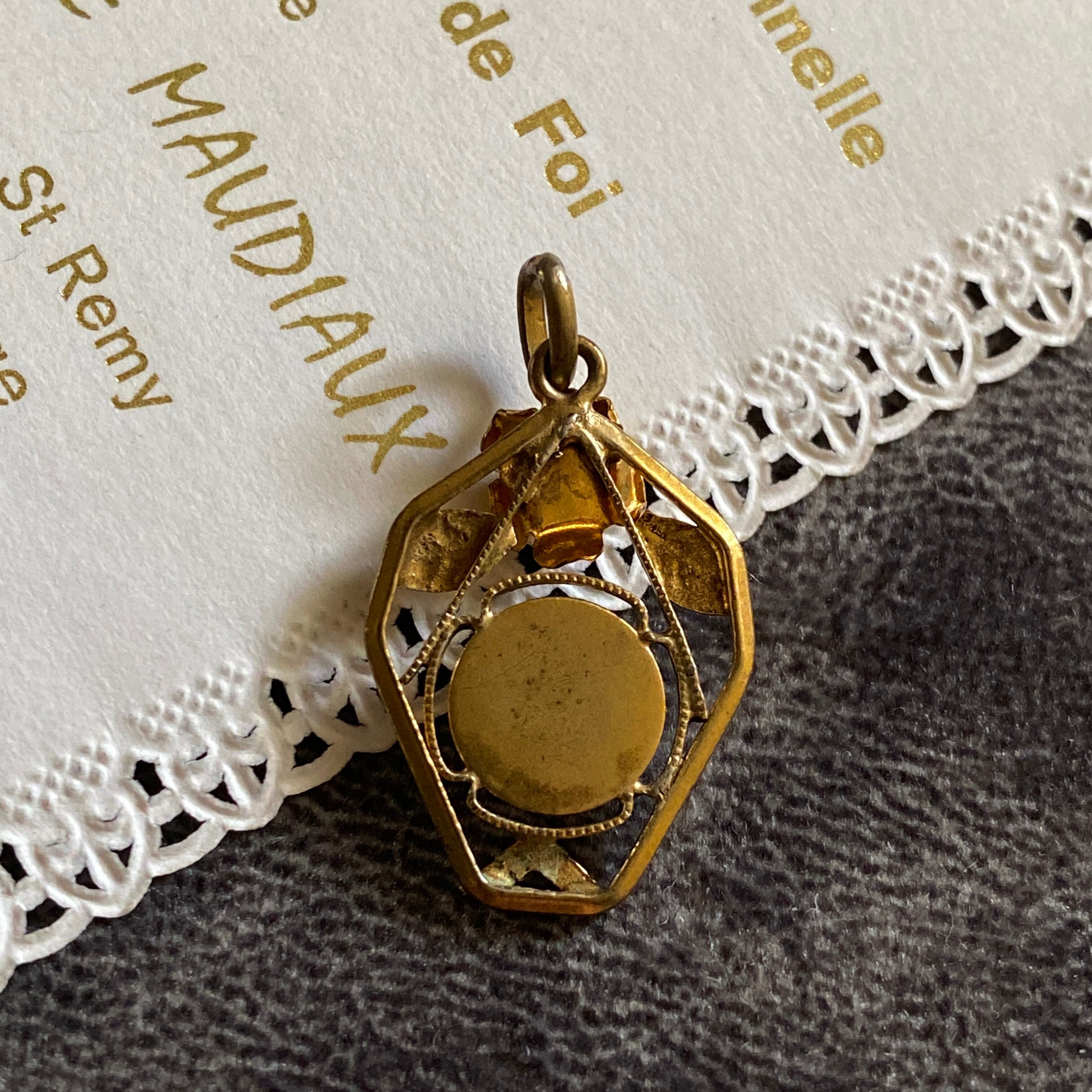 大変繊細な装飾が施されており、トップには聖母を象徴する薔薇の花、内側のフレームはミルグレインのような縁取りになっています。