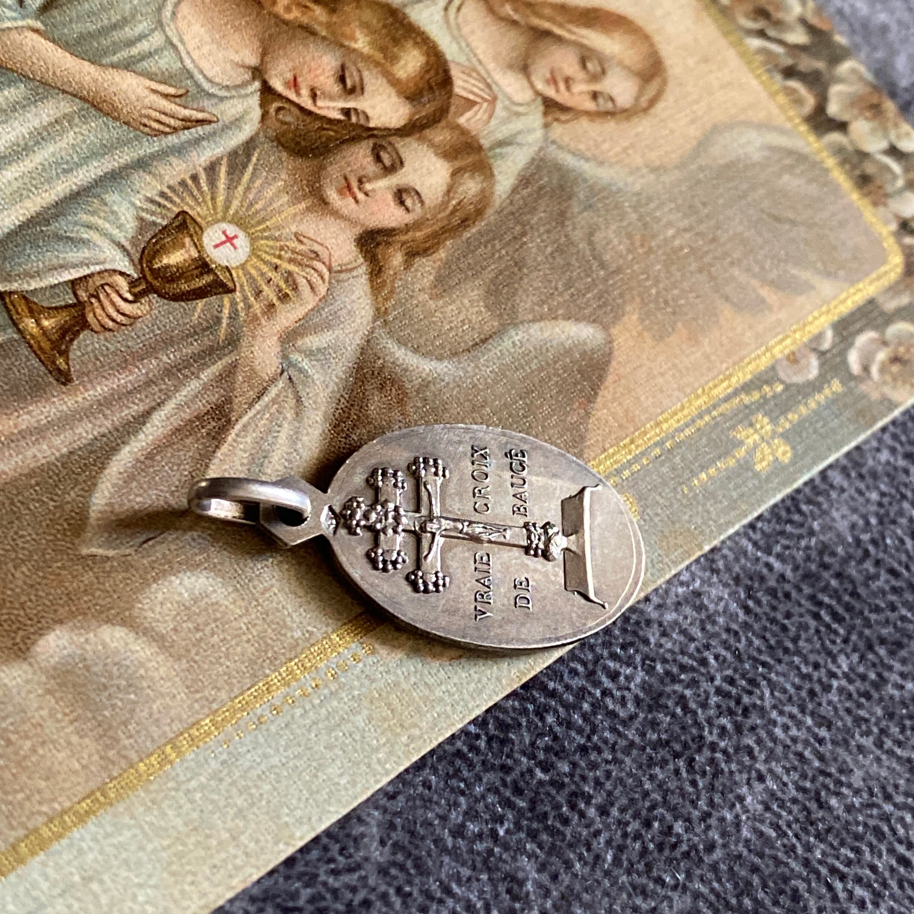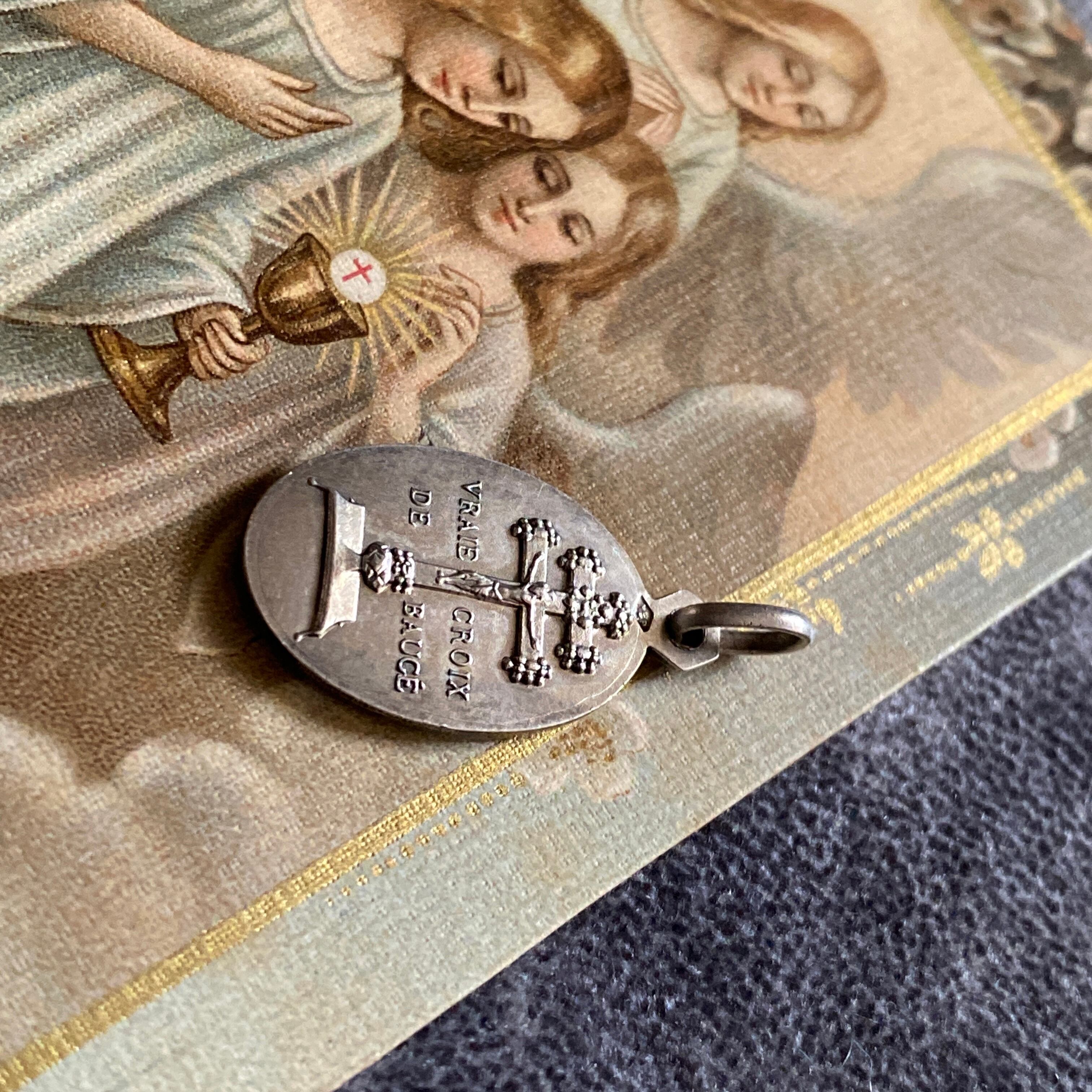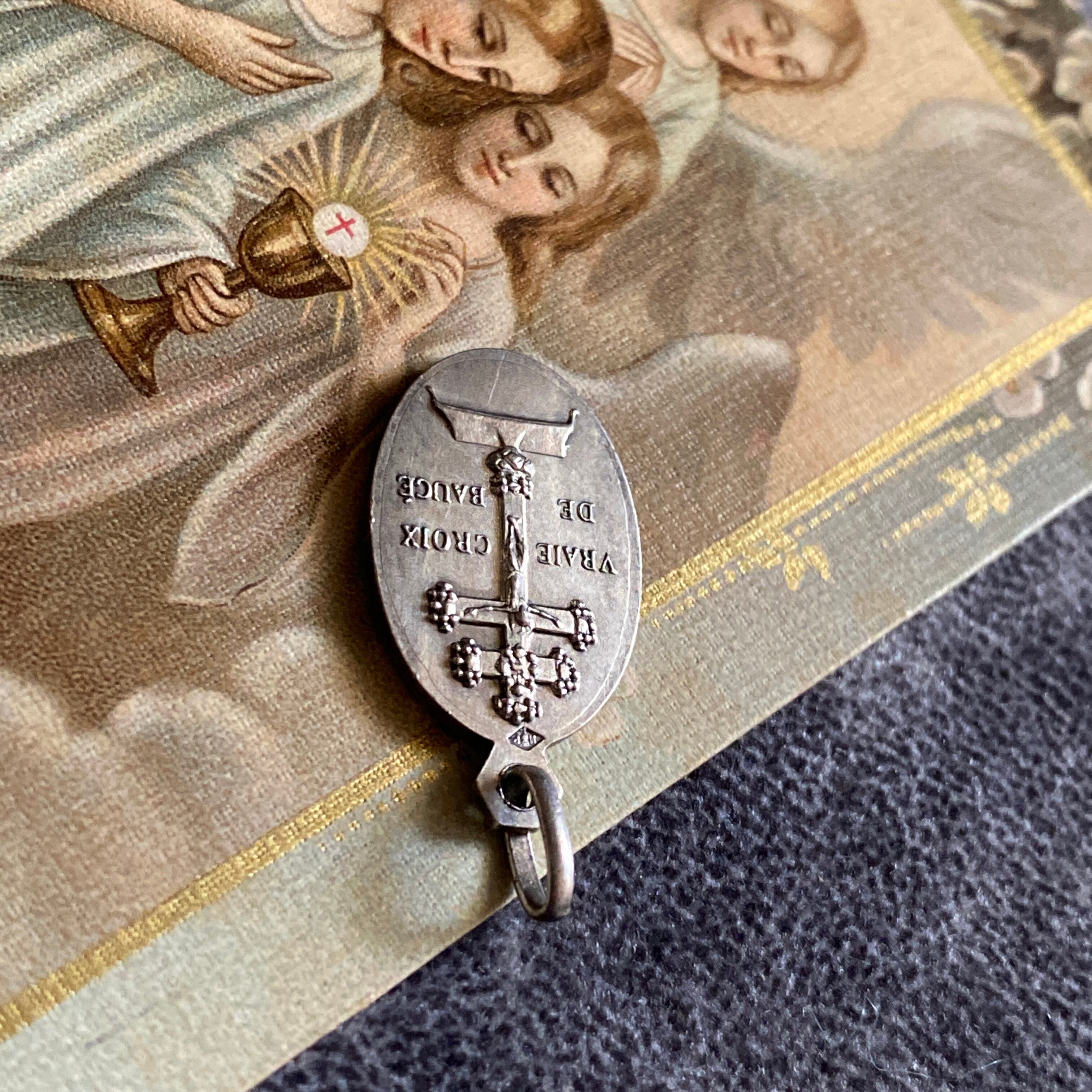 背面は花の装飾のクロスにかけられたイエスさまが描かれていて、希少で美しい作品です。