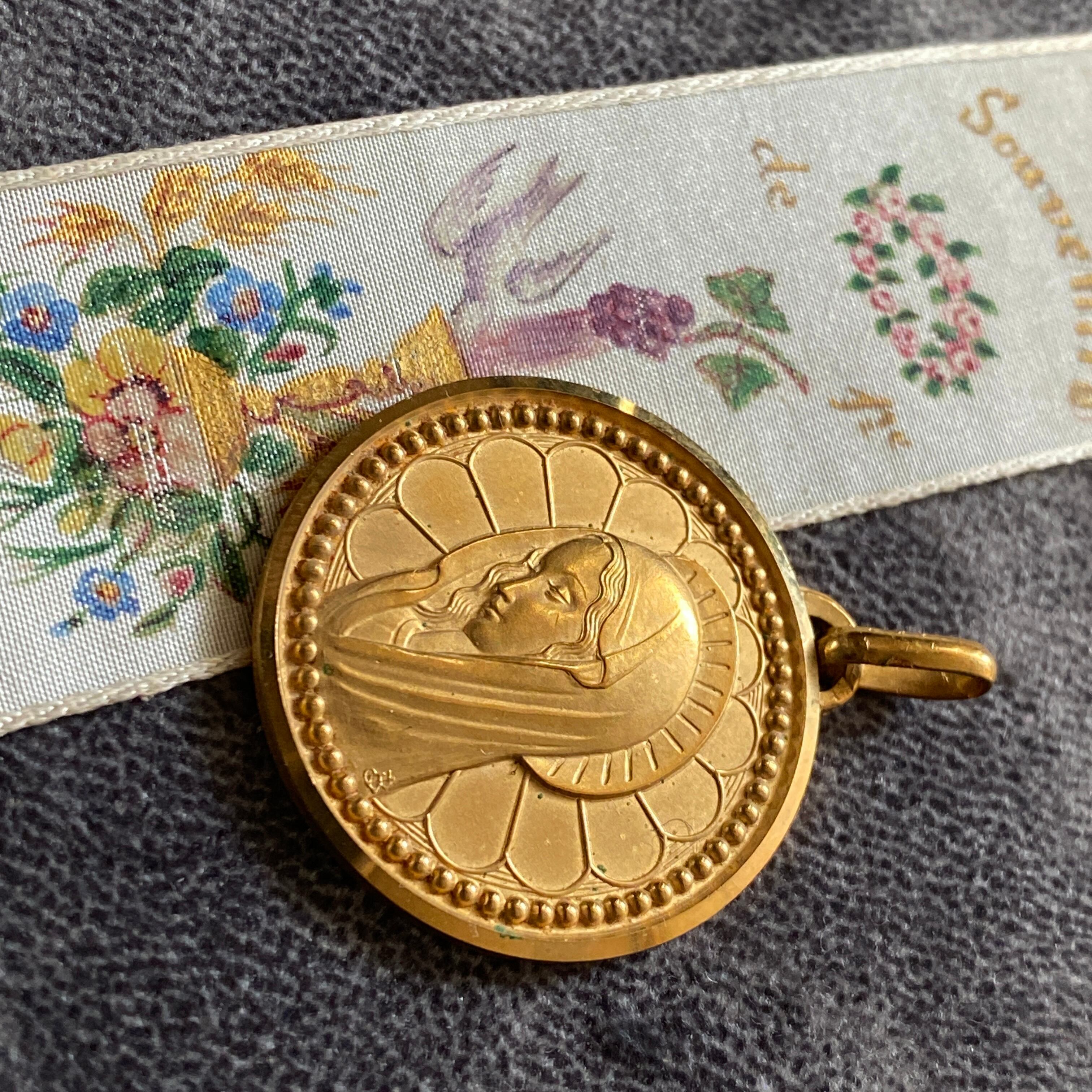 少し大きめのメダイにも関わらず、全体が優しいベールに包まれるような柔らかな作品になります。