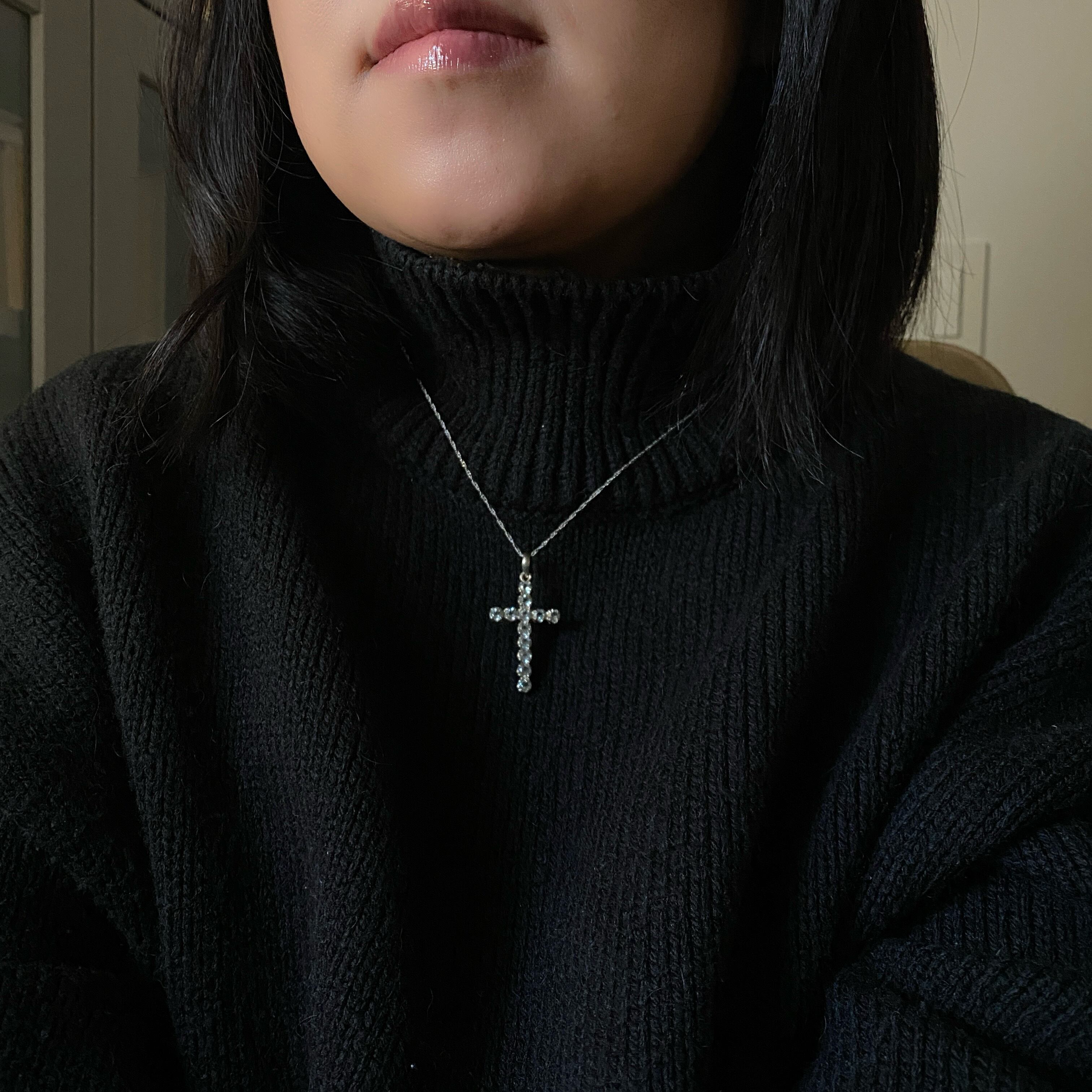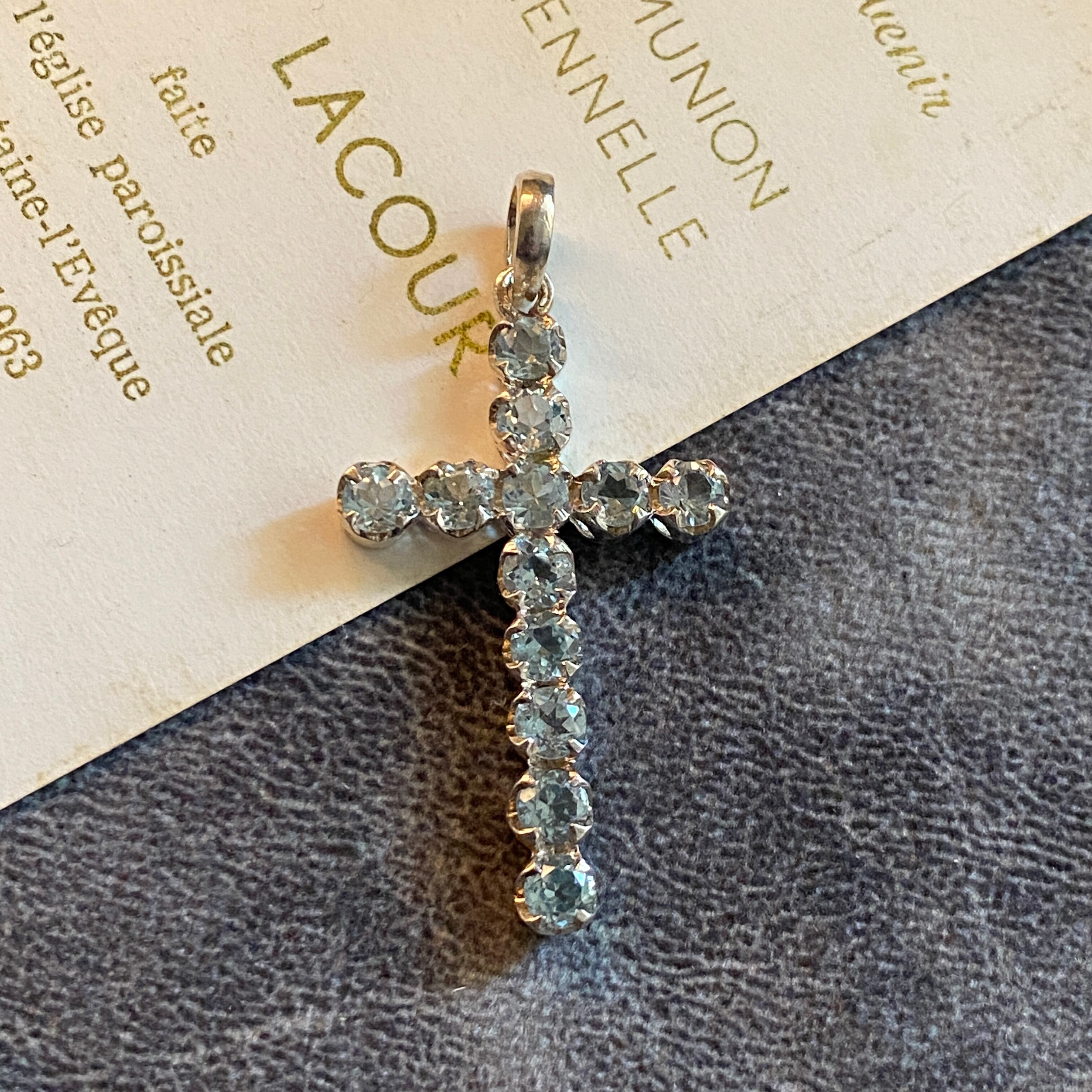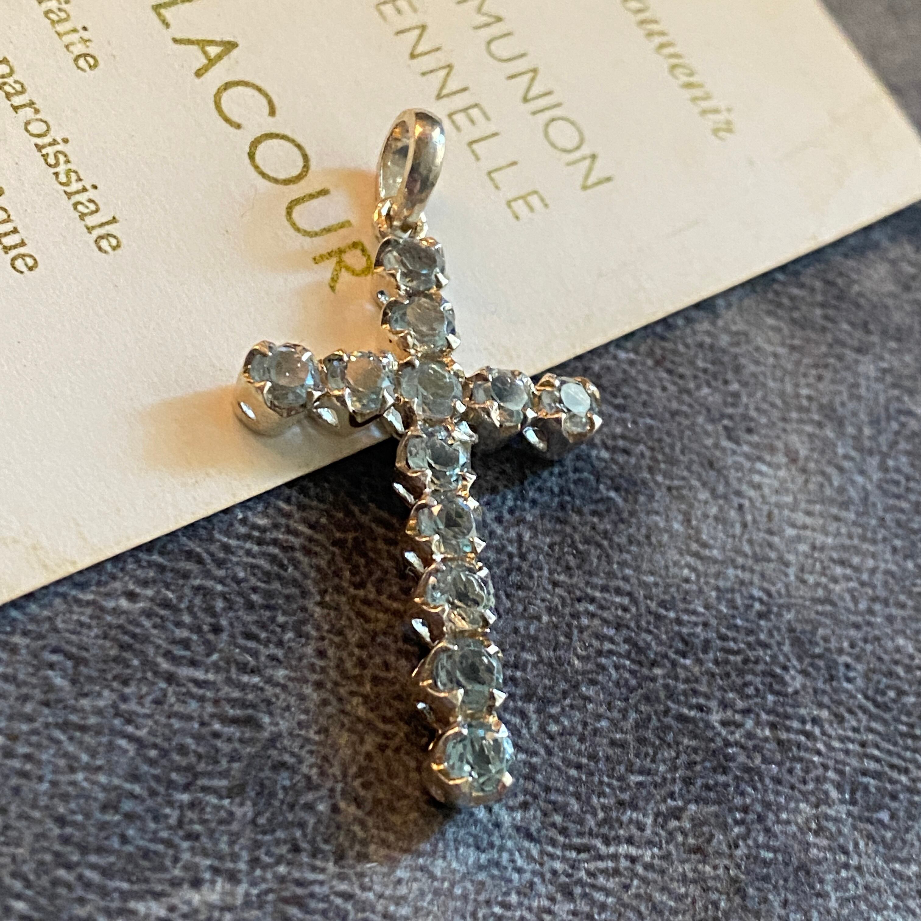 クリアな色味が美しいトパーズのカボションがスマートに並べられた美しいクロスです。