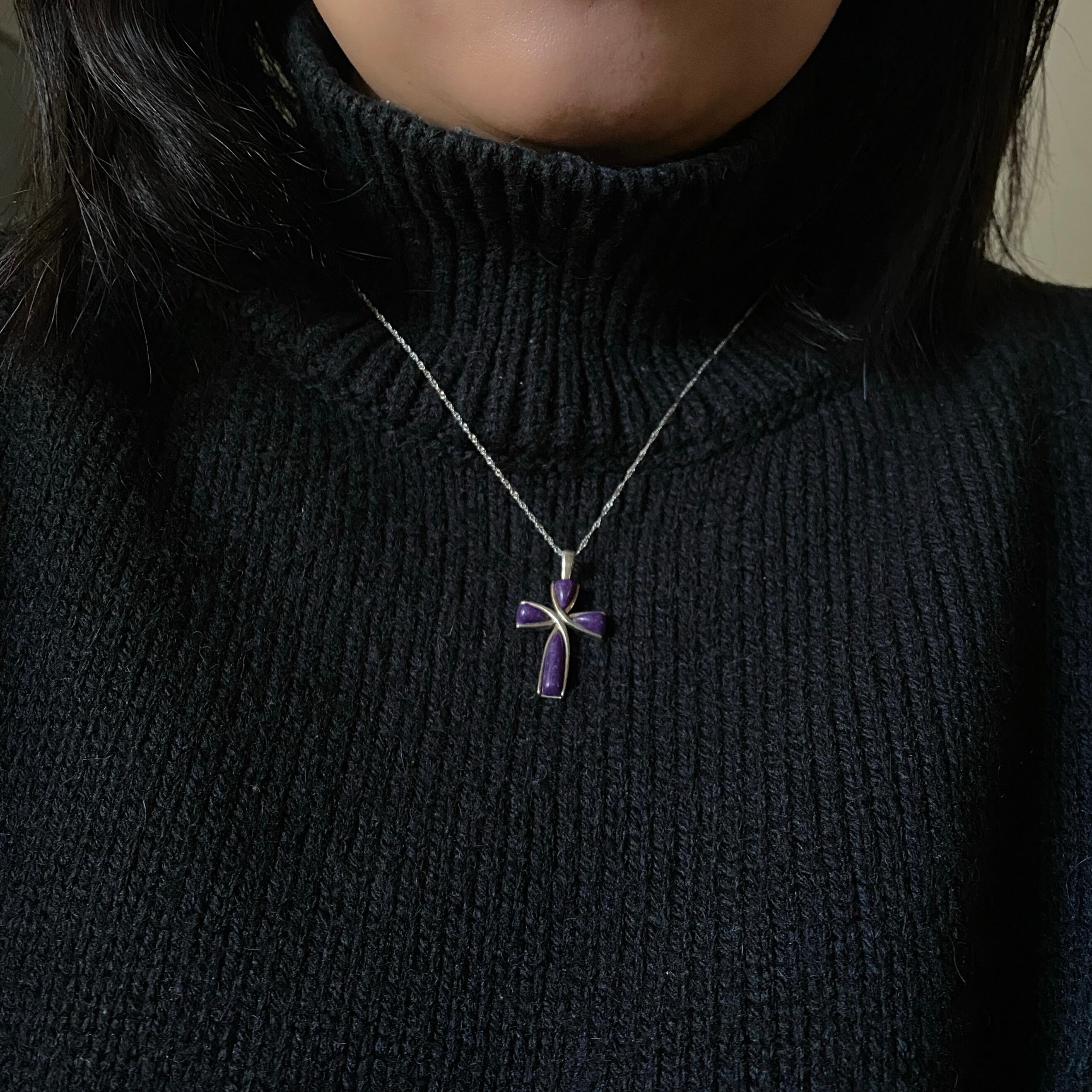 世界三大ヒーリングストーンの一つであるチャロアイトのクロスです。