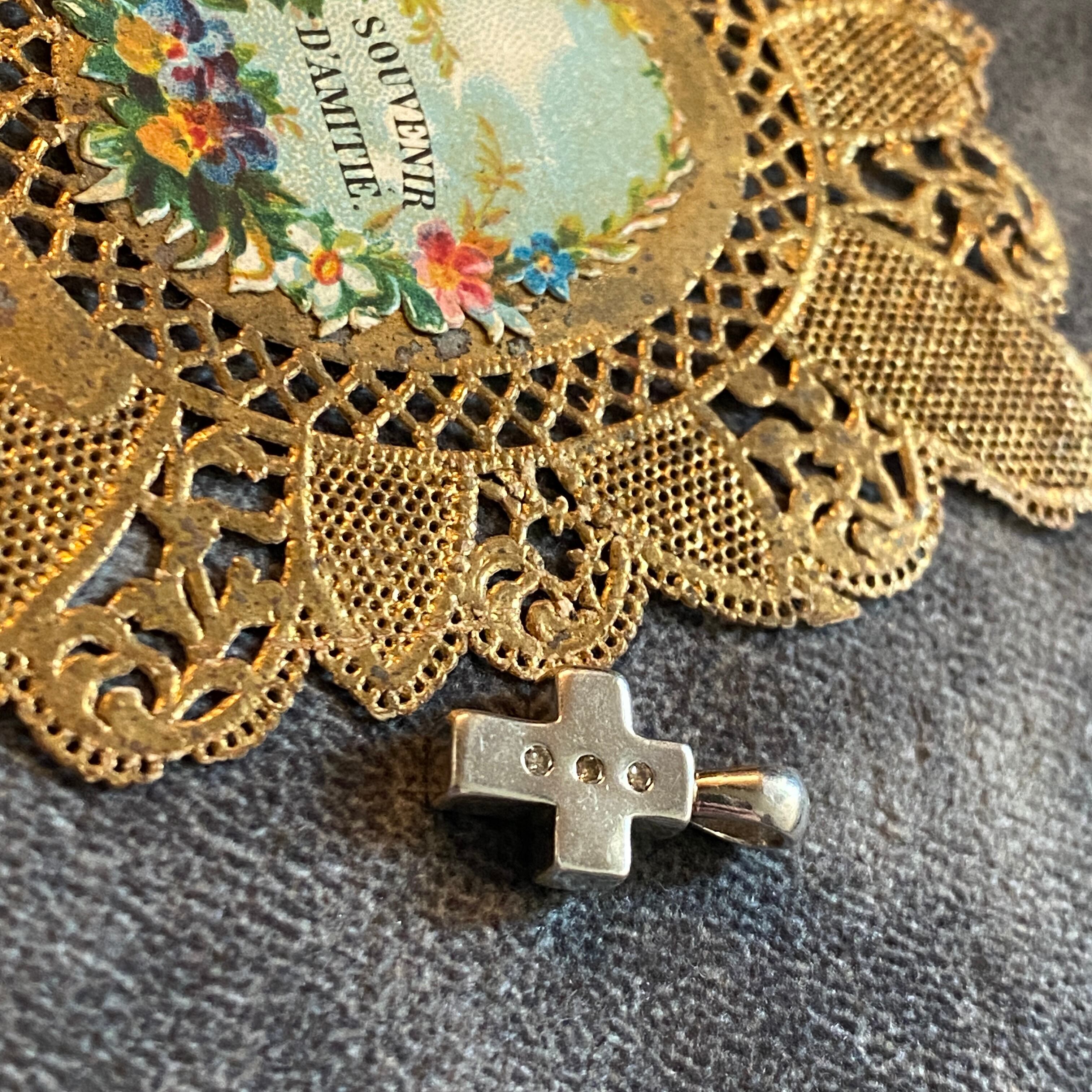 ダイヤモンドのエネルギーと厚みのあるシルバーのクロスがとても良いバランスを作り上げており、素晴らしいお守りジュエリーになるでしょう。