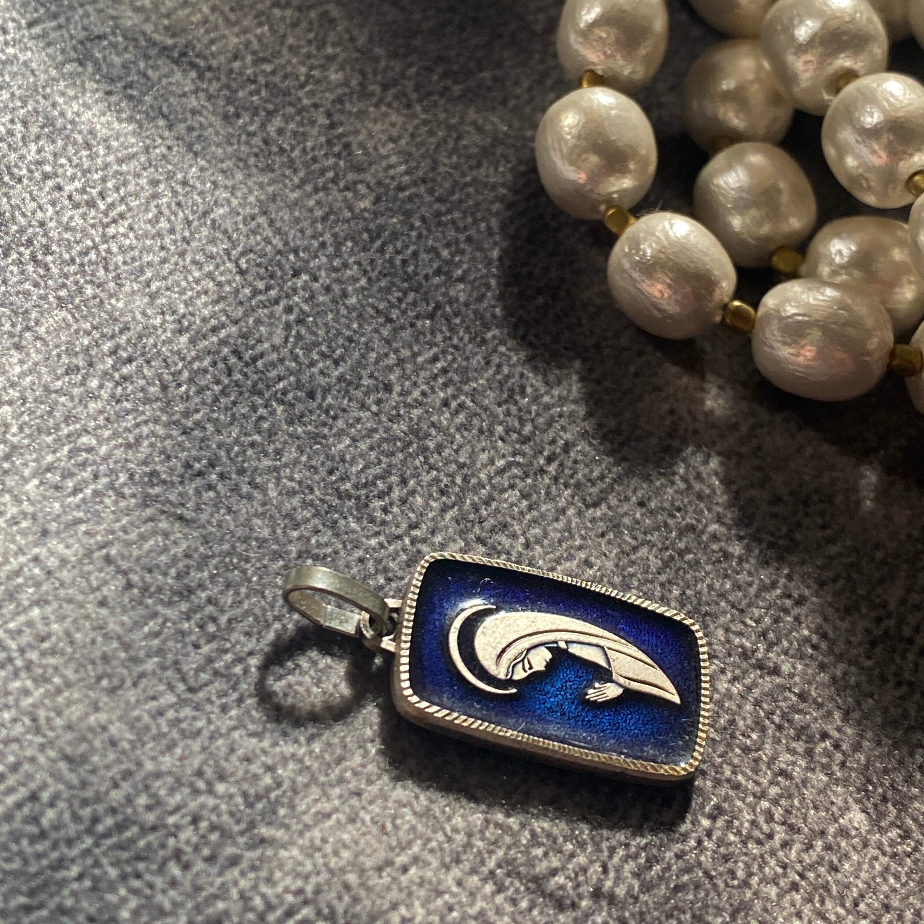 ネイビーのエナメルに浮かび上がる微笑むマリアさま。