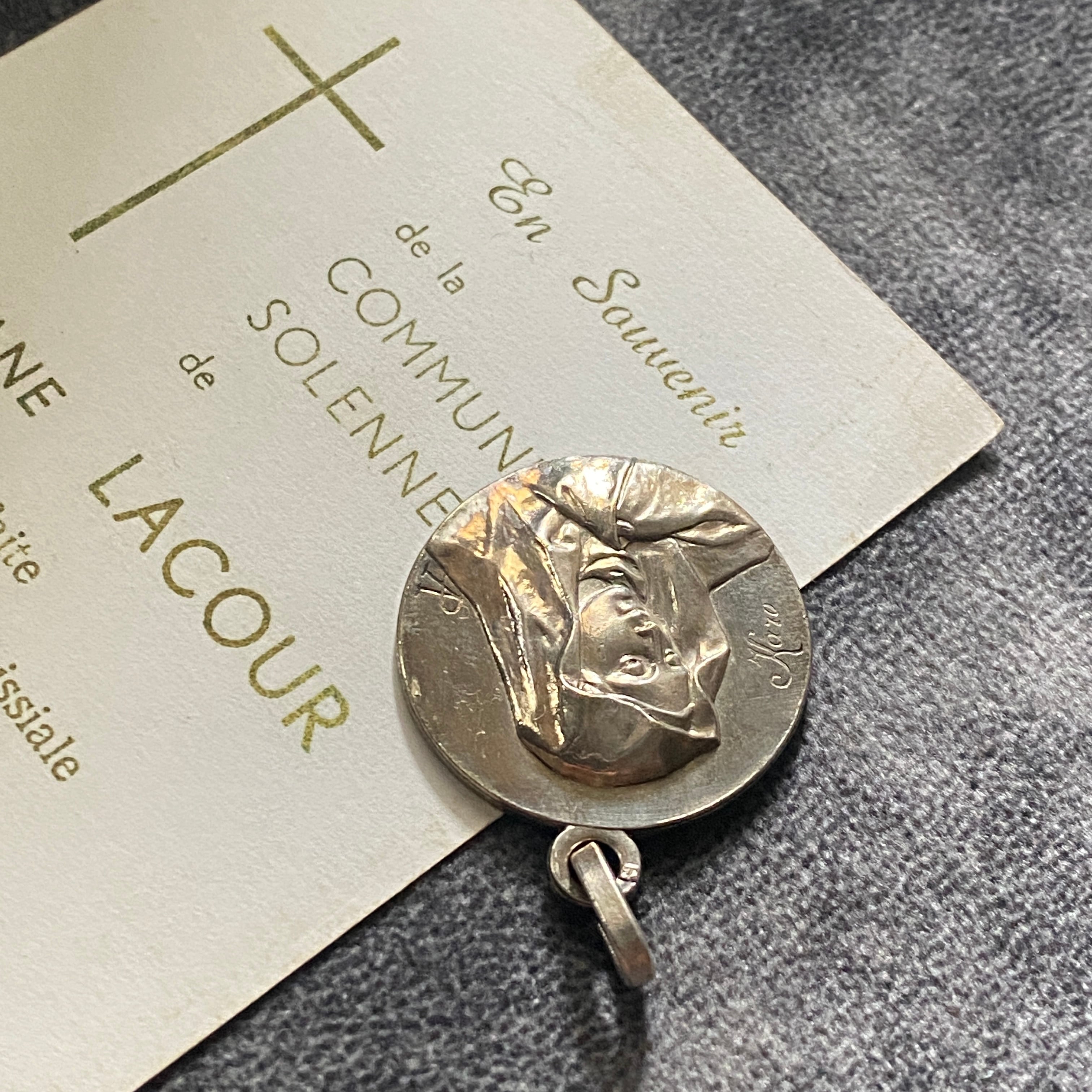 メダイ工房APの刻印が右下に、メダイ彫刻家KAROのサインが左下に読み取れます。