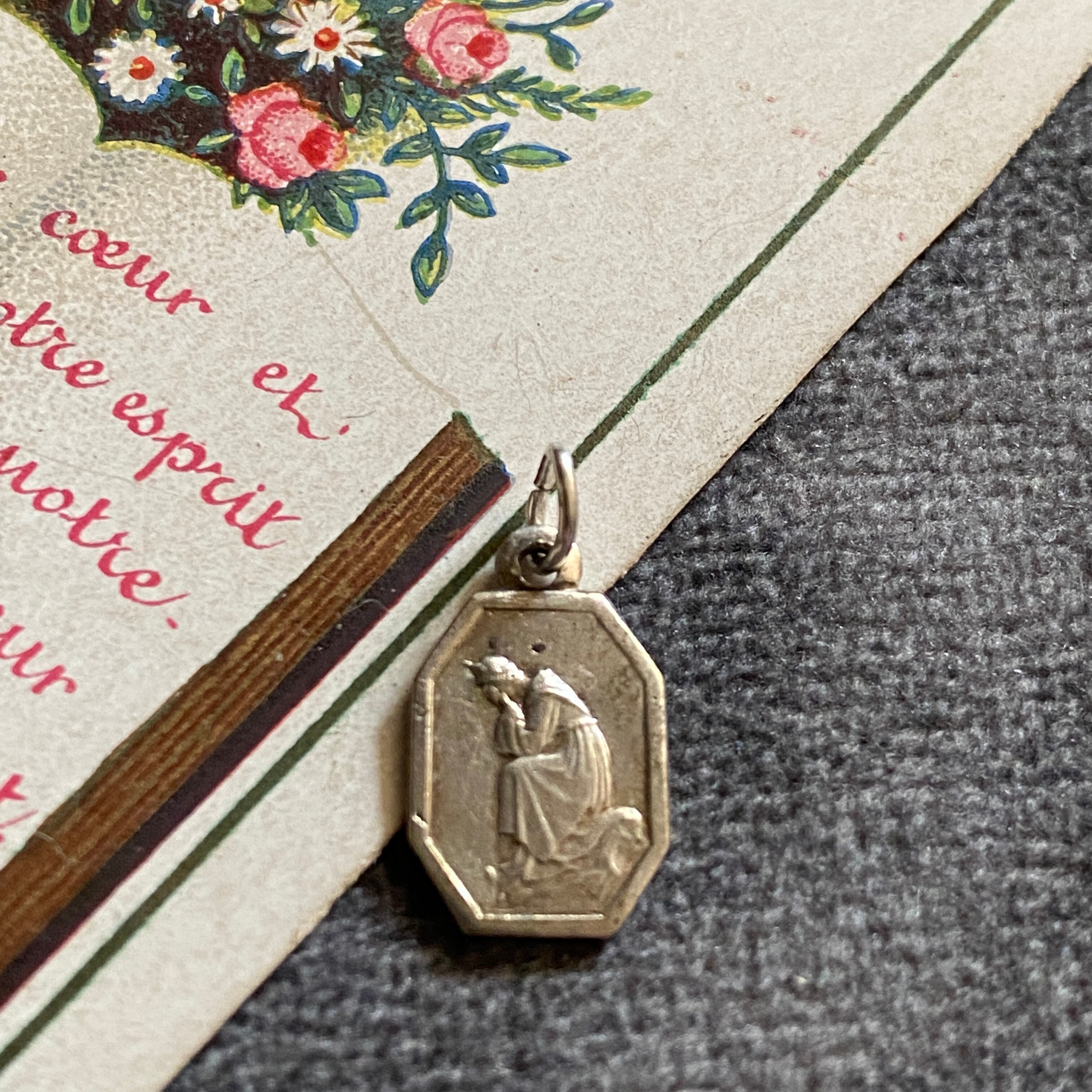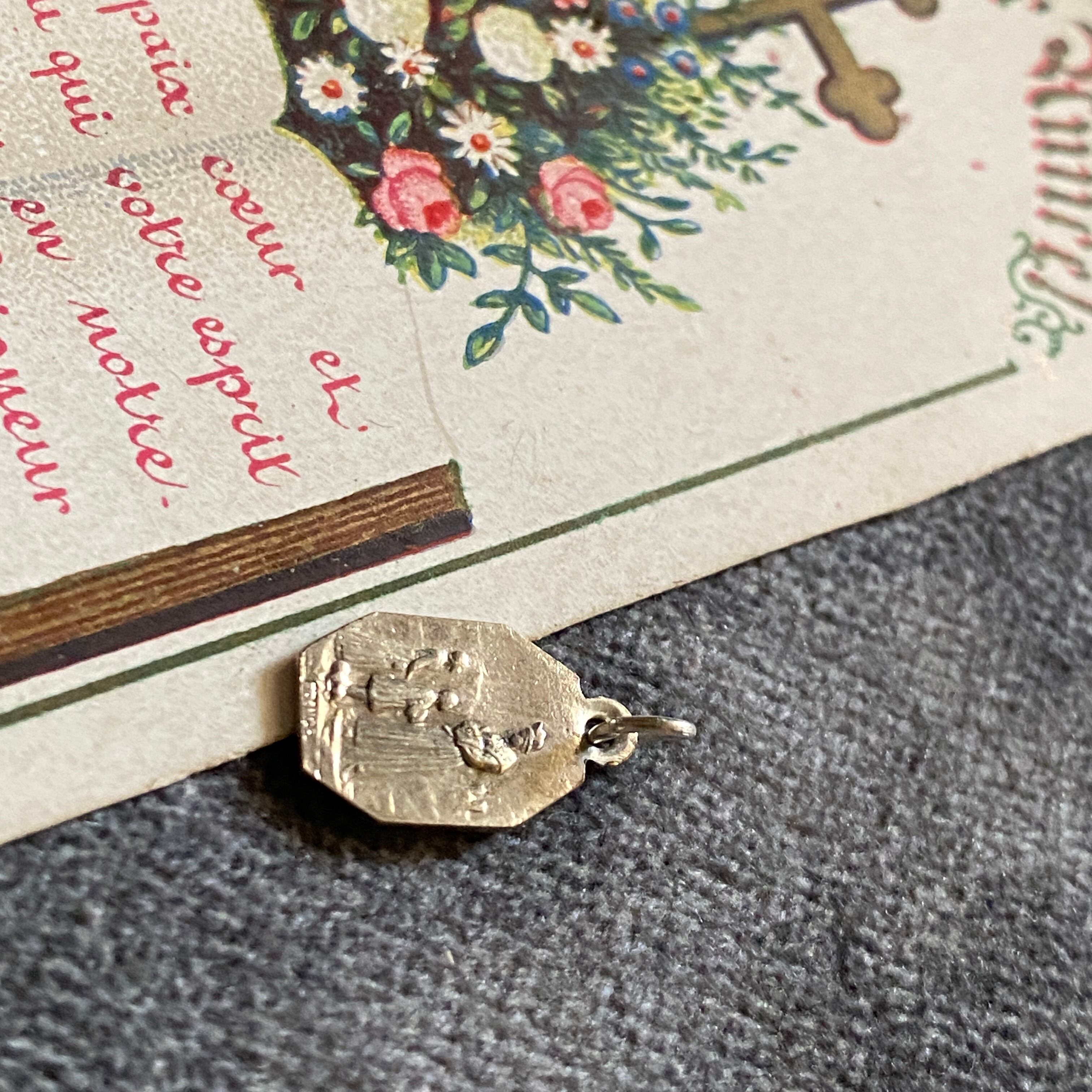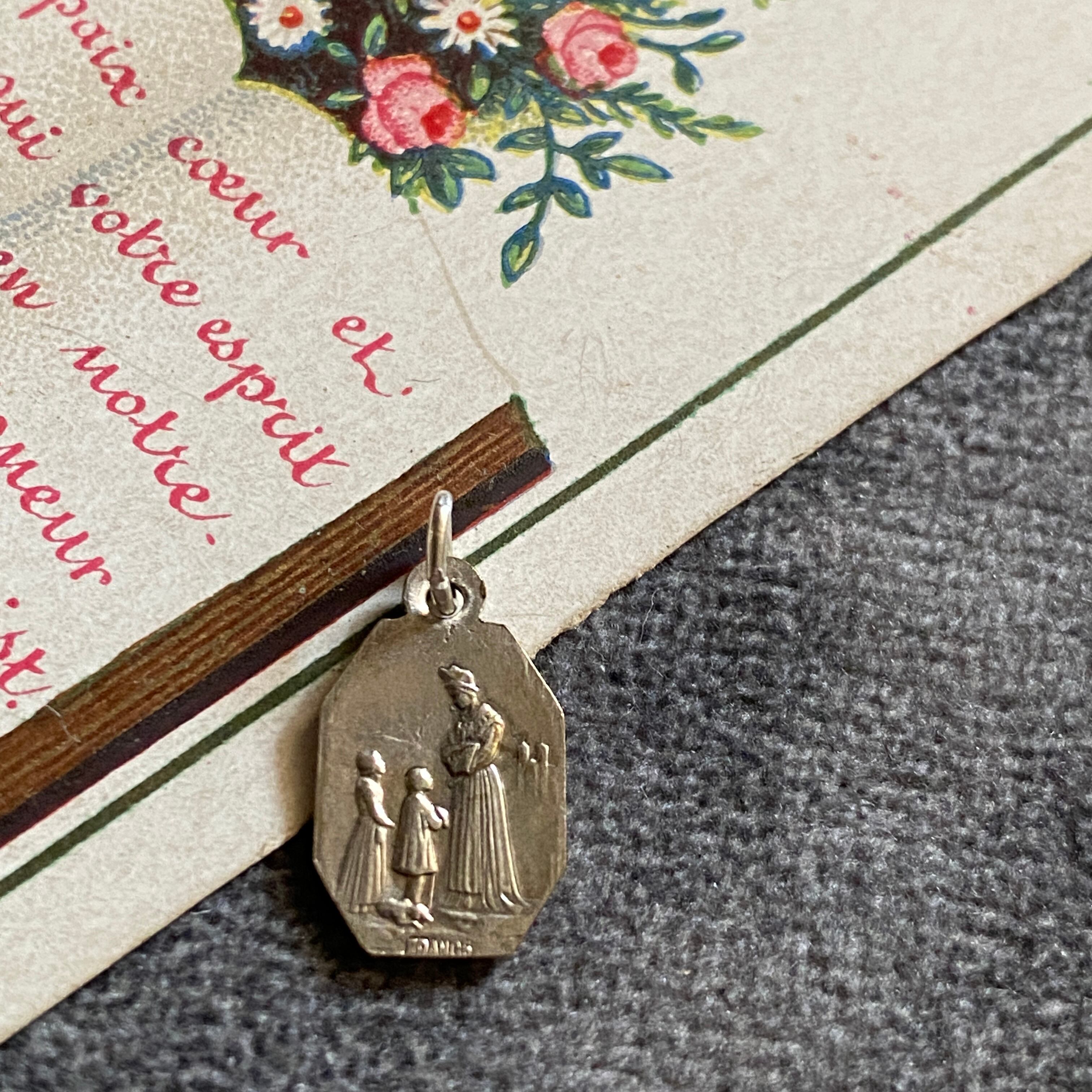 1846年9月19日、フランスのラ・サレット (La Salette) にて、牛飼いの少女メラニー・カルヴァと11歳の牛飼いの少年マクシマン・ジローの2人の子供が報告した聖母の御出現のシーンのメダイです。