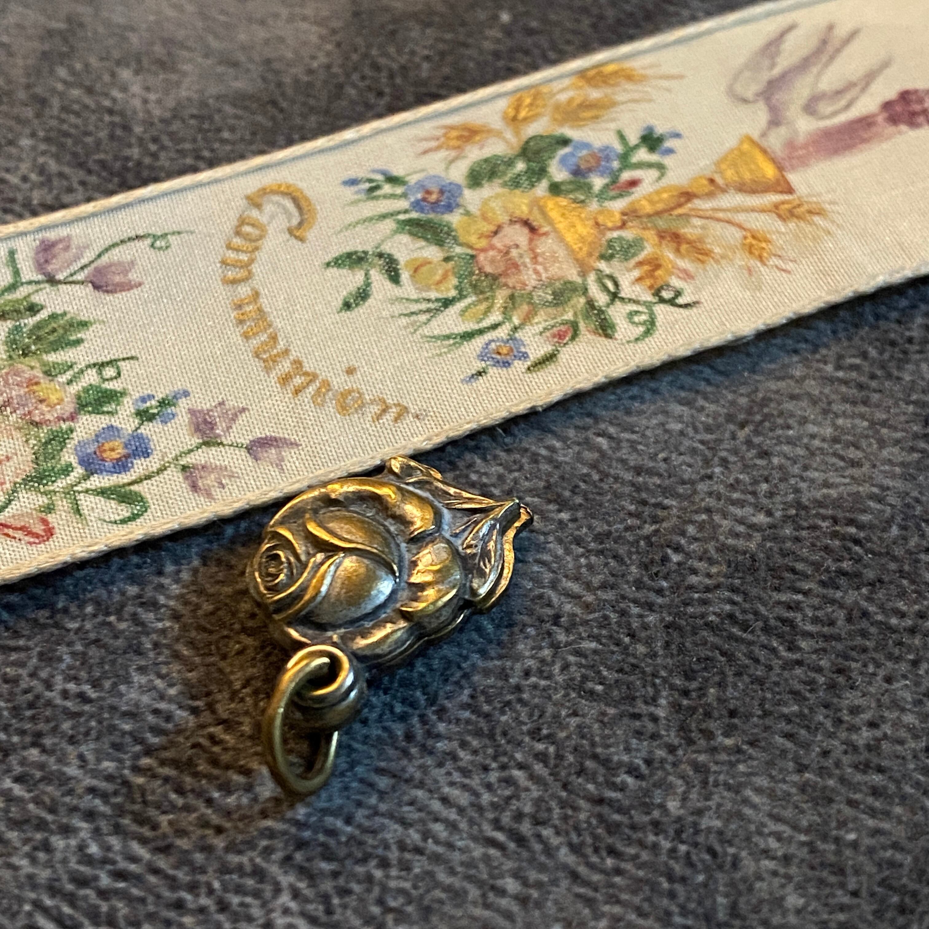 片面には、お祈りを捧げているようにも聖書を読んでいるようにも見える者の御姿、そしてもう片面には、聖アンソニーが幼子イエスを抱いた場面が繊細に描かれています。