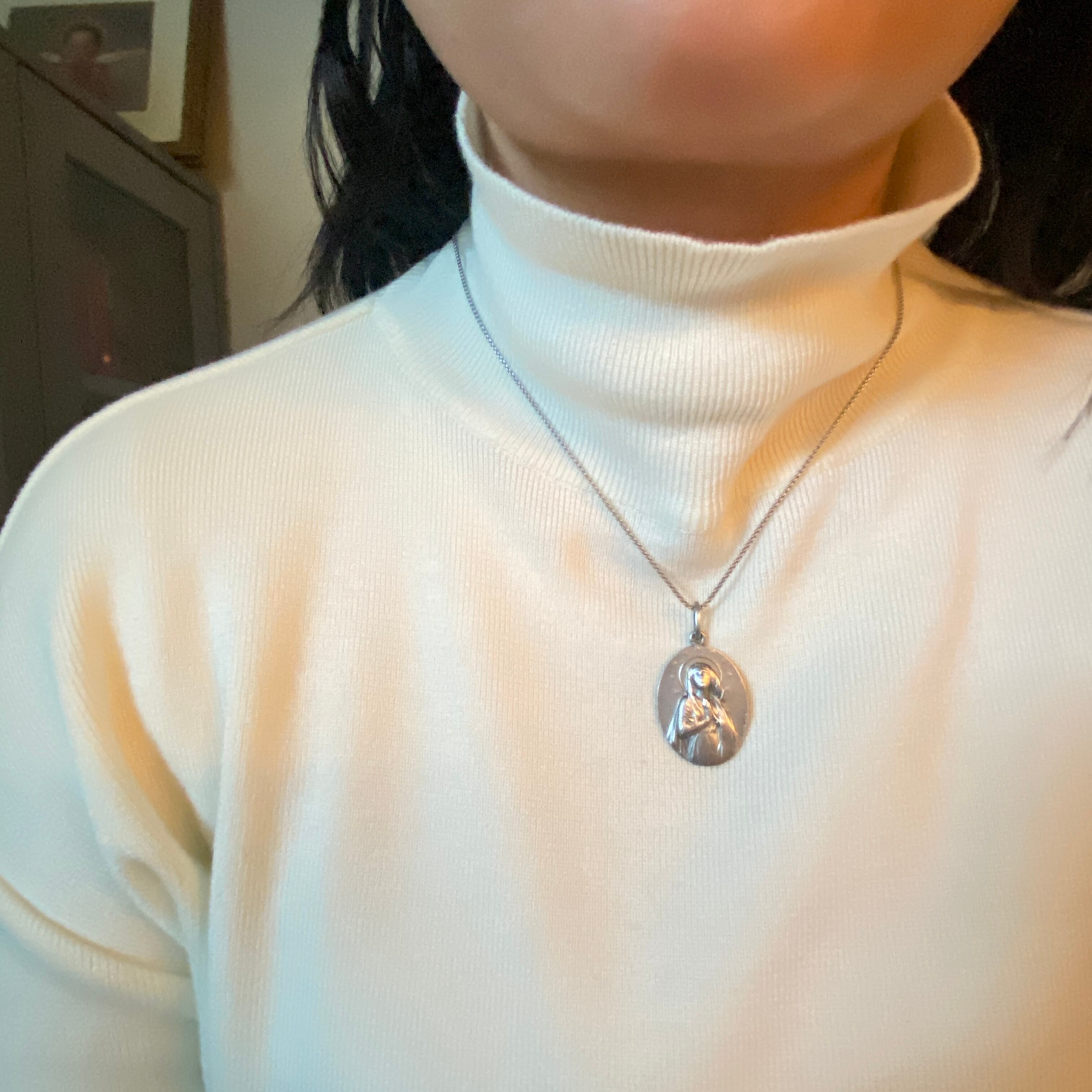 背面のデザインも素晴らしく、ネームを入れる箇所に新たに刻印し、大切なお守りジュエリーとして、また贈りものとしてもお使いいただけます。