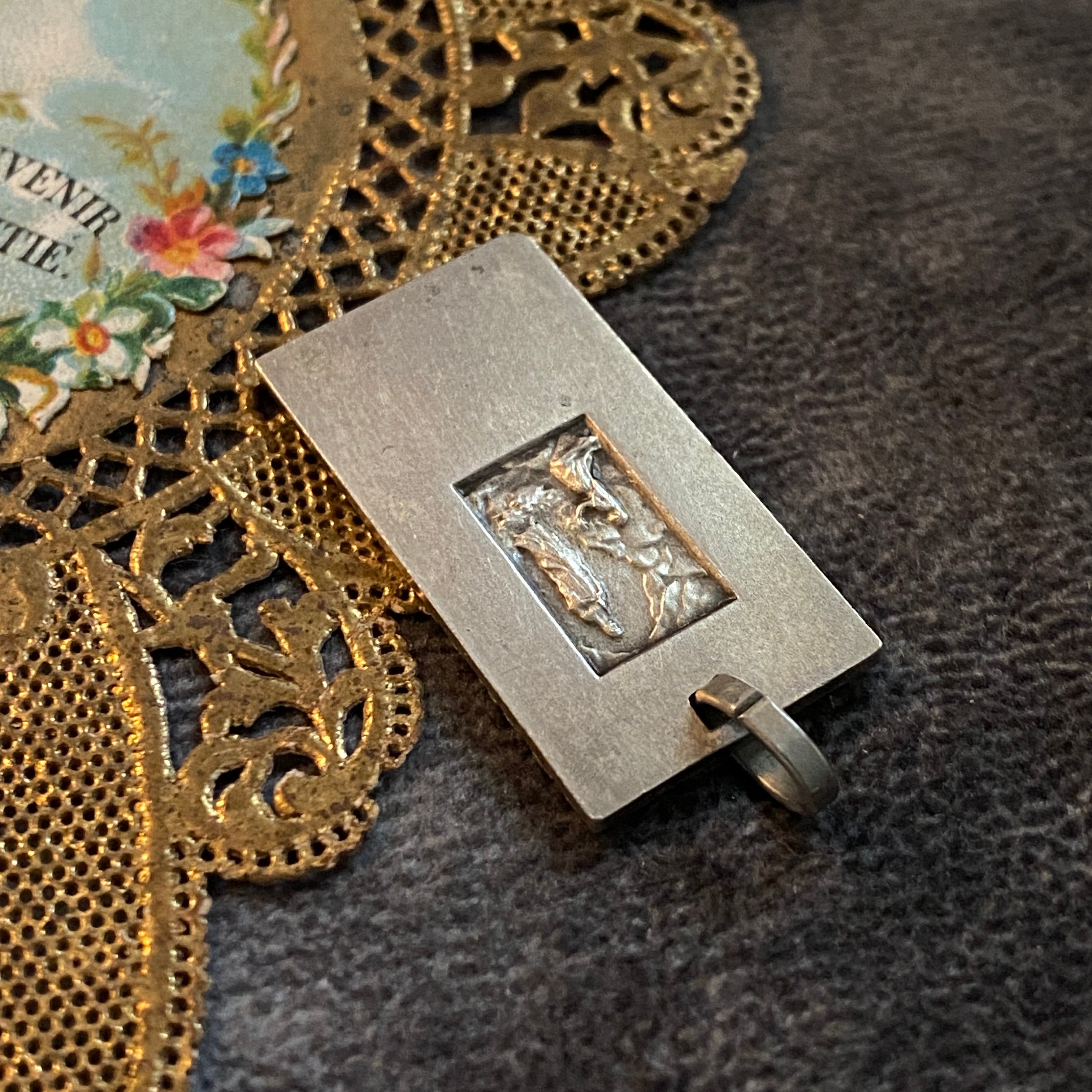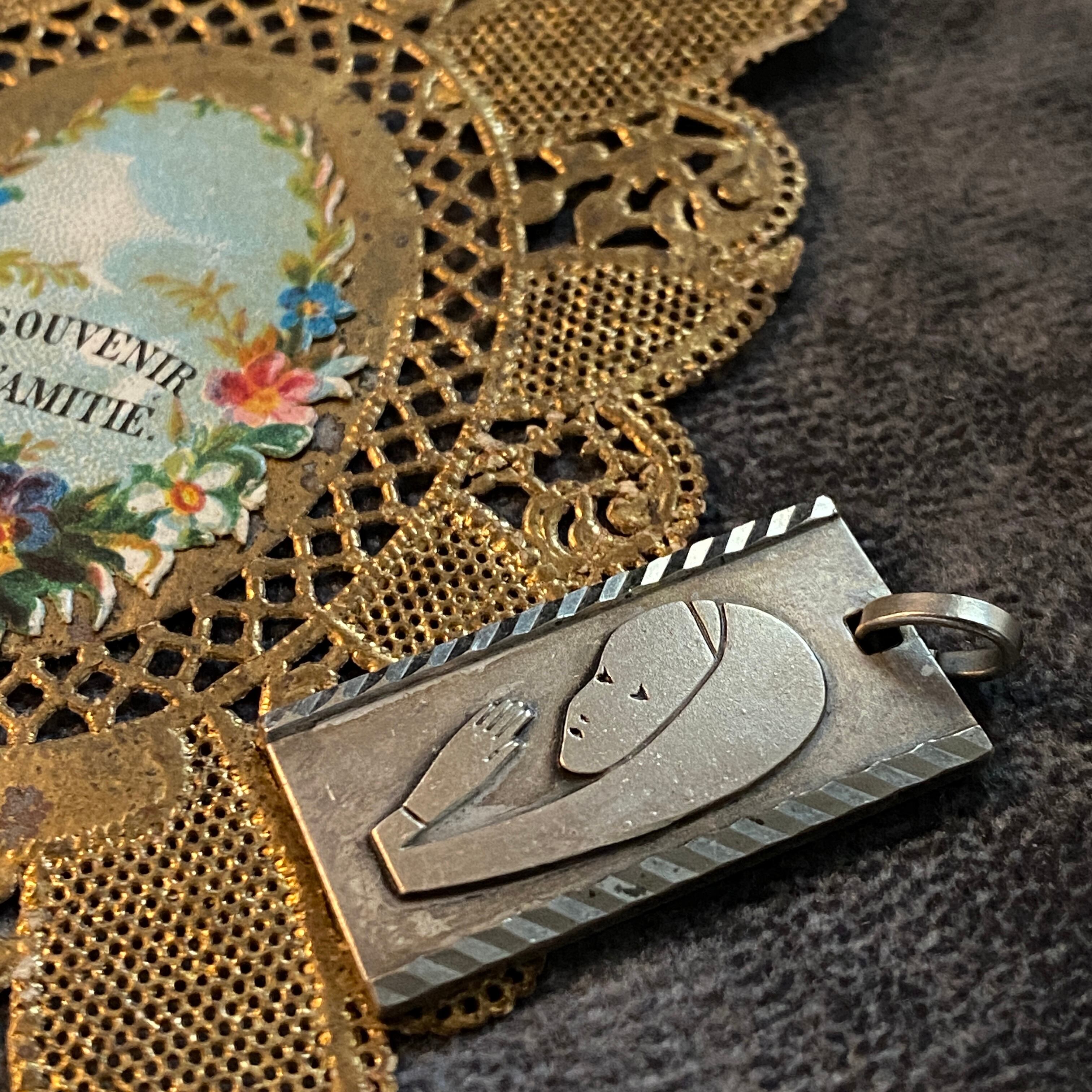 素朴で研ぎ澄まされたデザインのマリアさまのフォルムと、スマートなフレームのコントラストが珍しい作品。