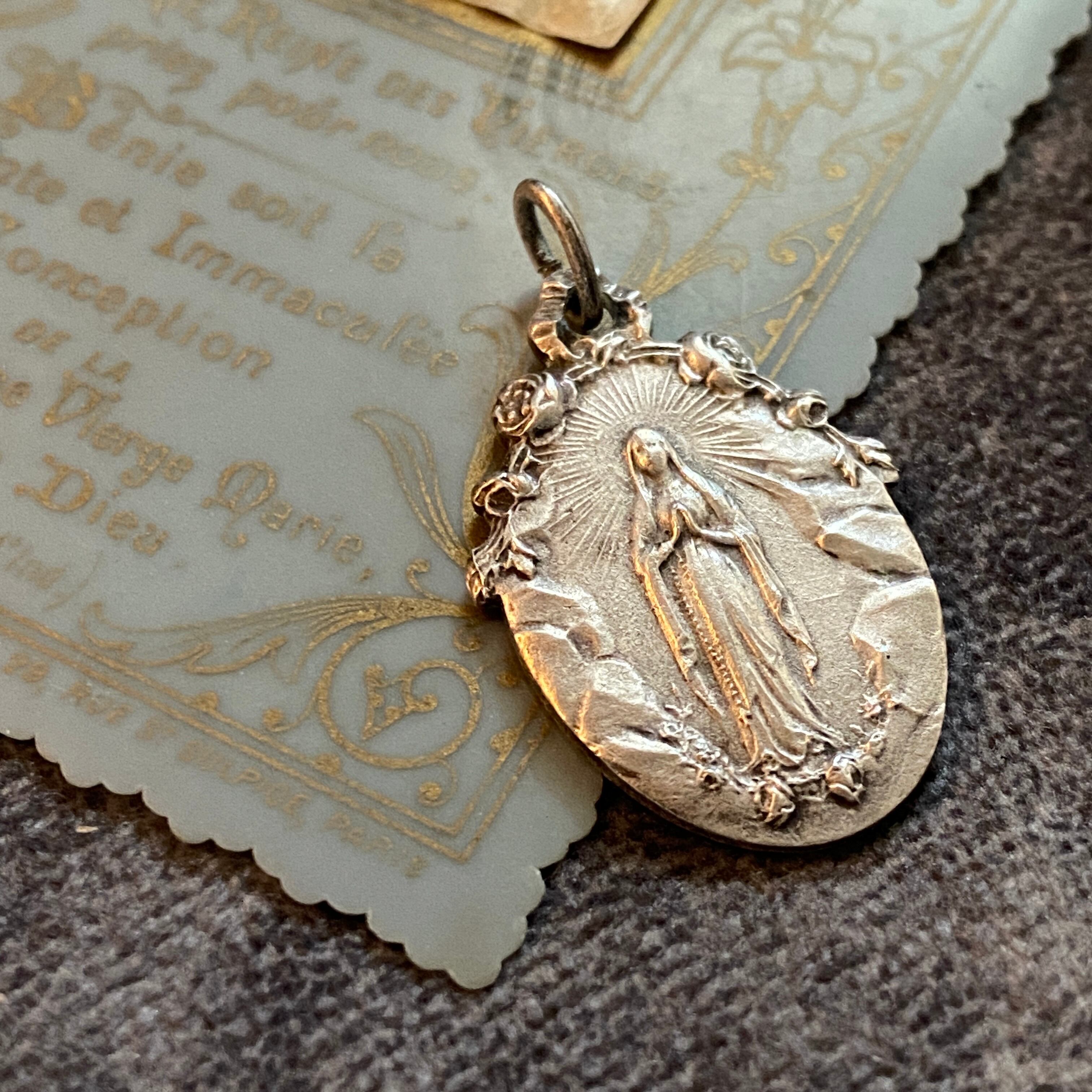 ルルドの洞窟に現れた際に、咲くはずのない薔薇を咲かせたという歴史をデザインに感じられる美しい本作。