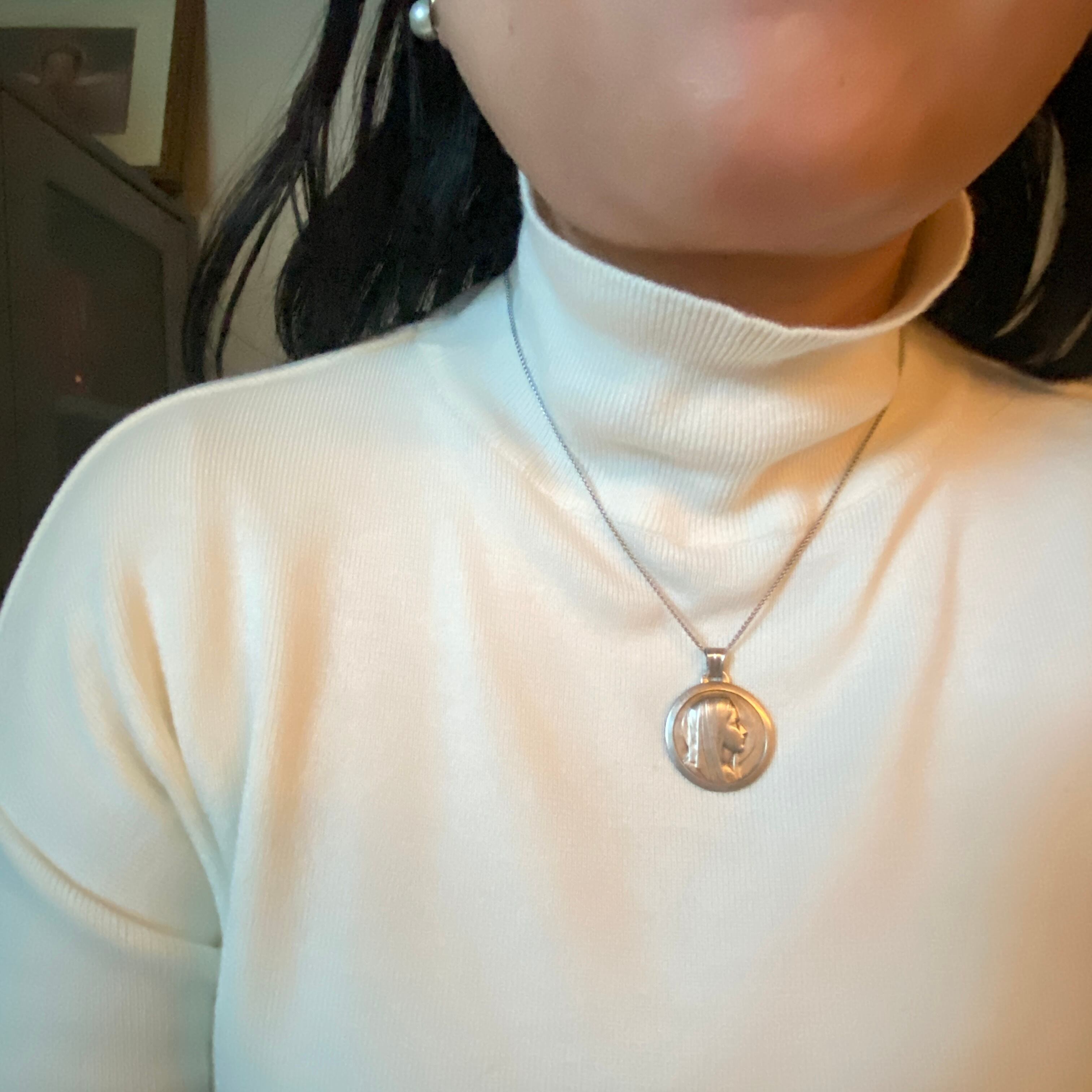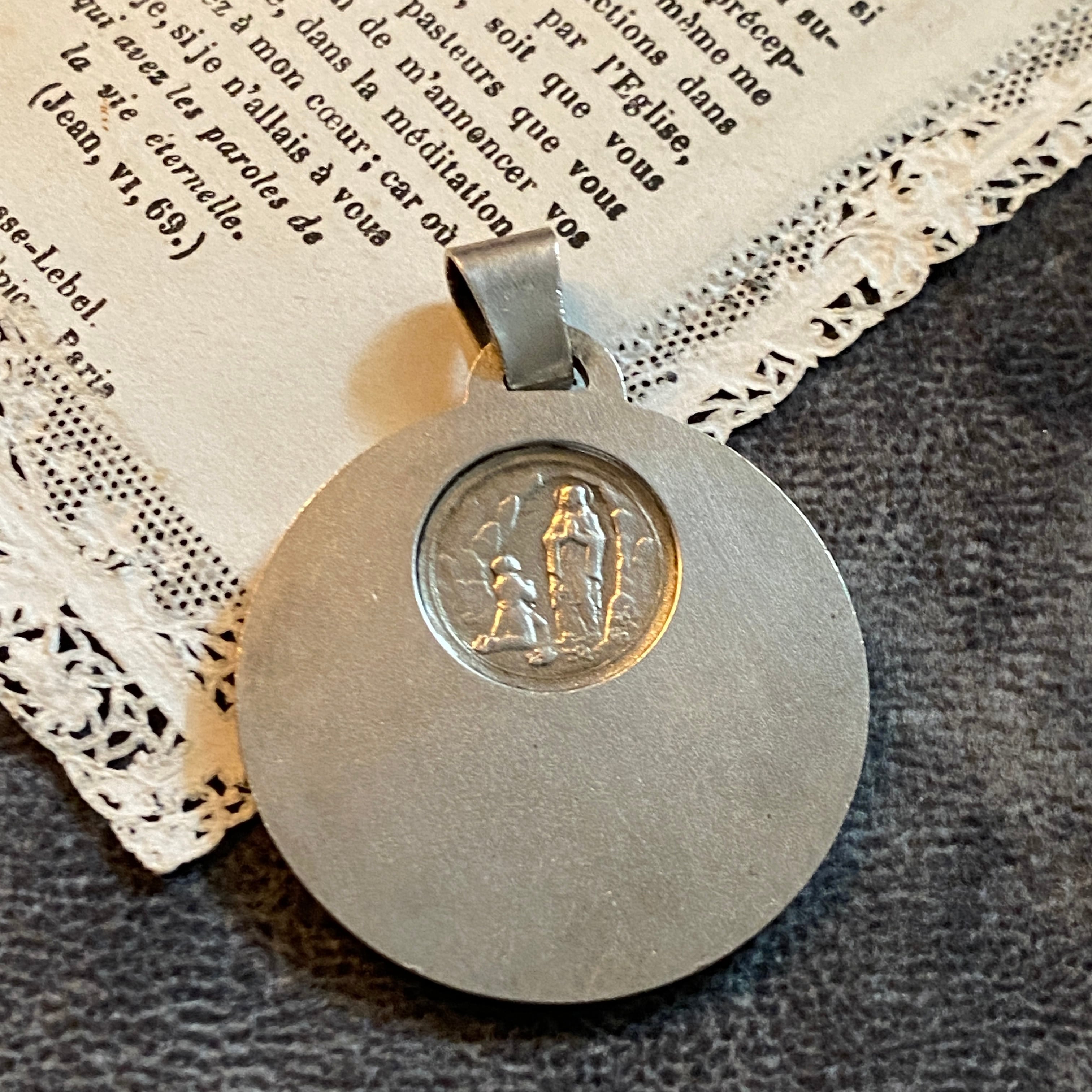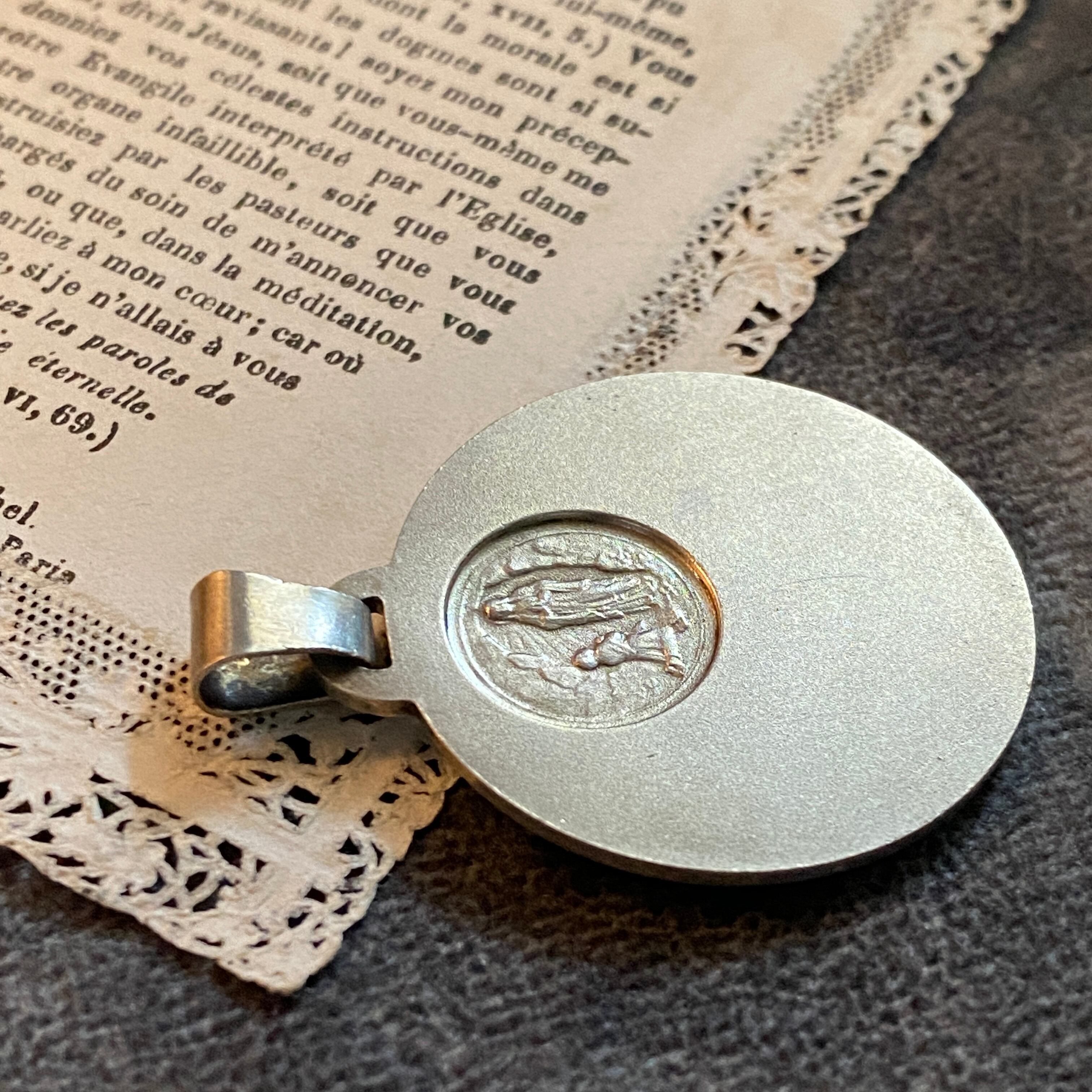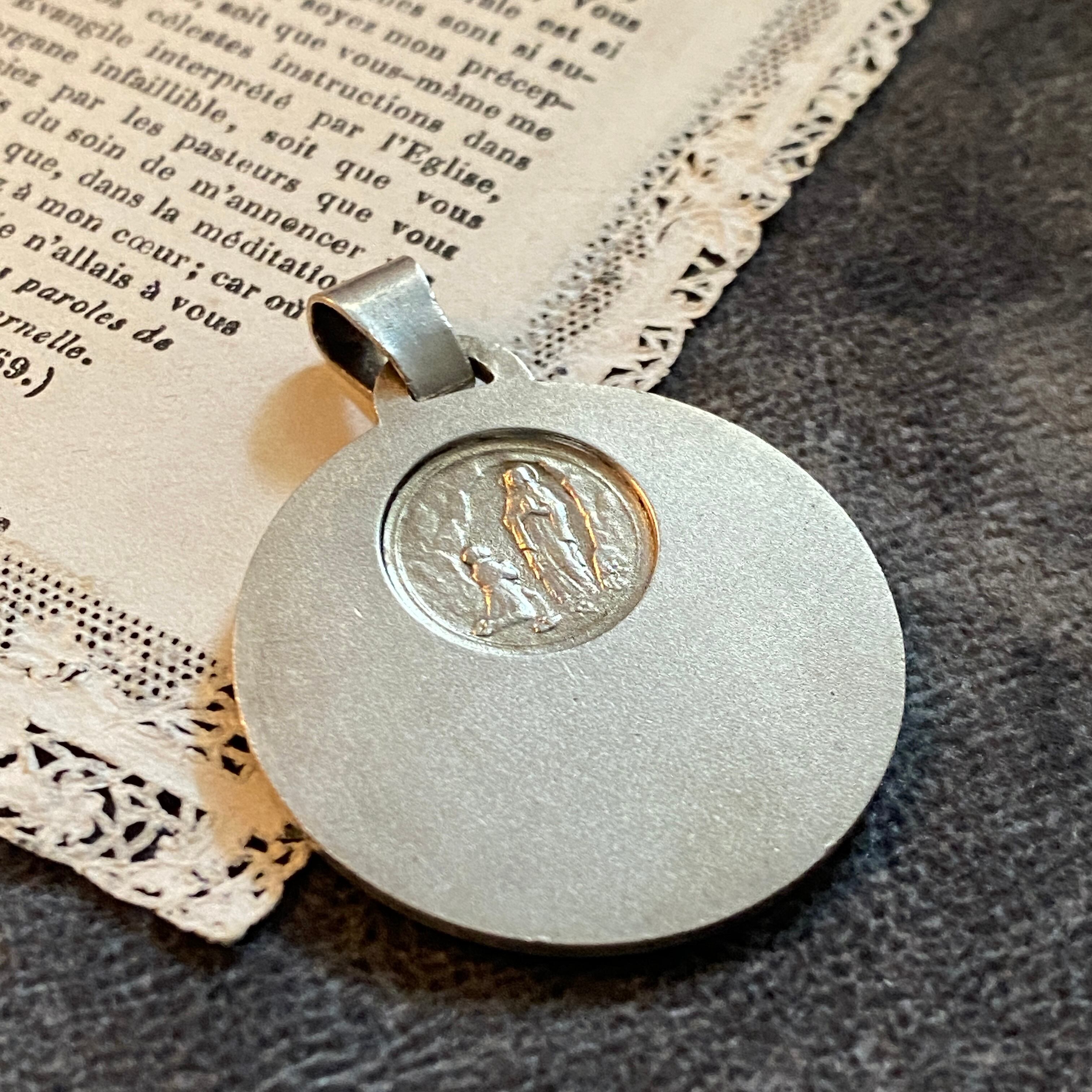 シンプルなリムに縁取られた祈りのマリアさまは、しっかりと前を見据えておいでです。